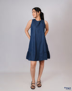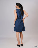 Dress with Side Frill Skirt - Dark Blue