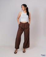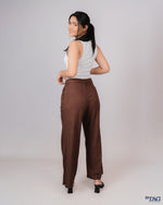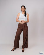 Ladies Linen Pleated Pant - Dark brown